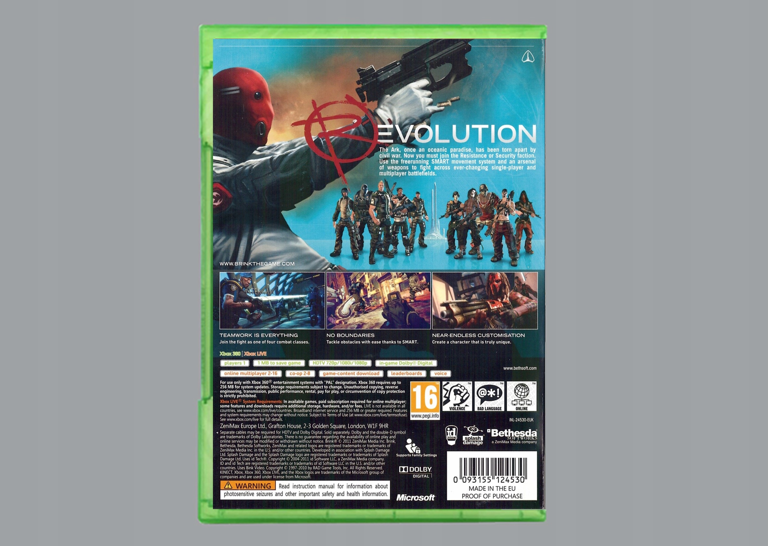 Оплачивая «Научно-фантастический шутер от первого лица BRINK для Xbox 360», вы можете быть уверены, что данное изделие из каталога «Microsoft Xbox 360» будет доставлено из Польши и проверено на целостность. В цене товара, указанной на сайте, учтена доставка из Польши. Внимание!!! Товары для Евросоюза, согласно законодательству стран Евросоюза, могут отличаться упаковкой или наполнением.