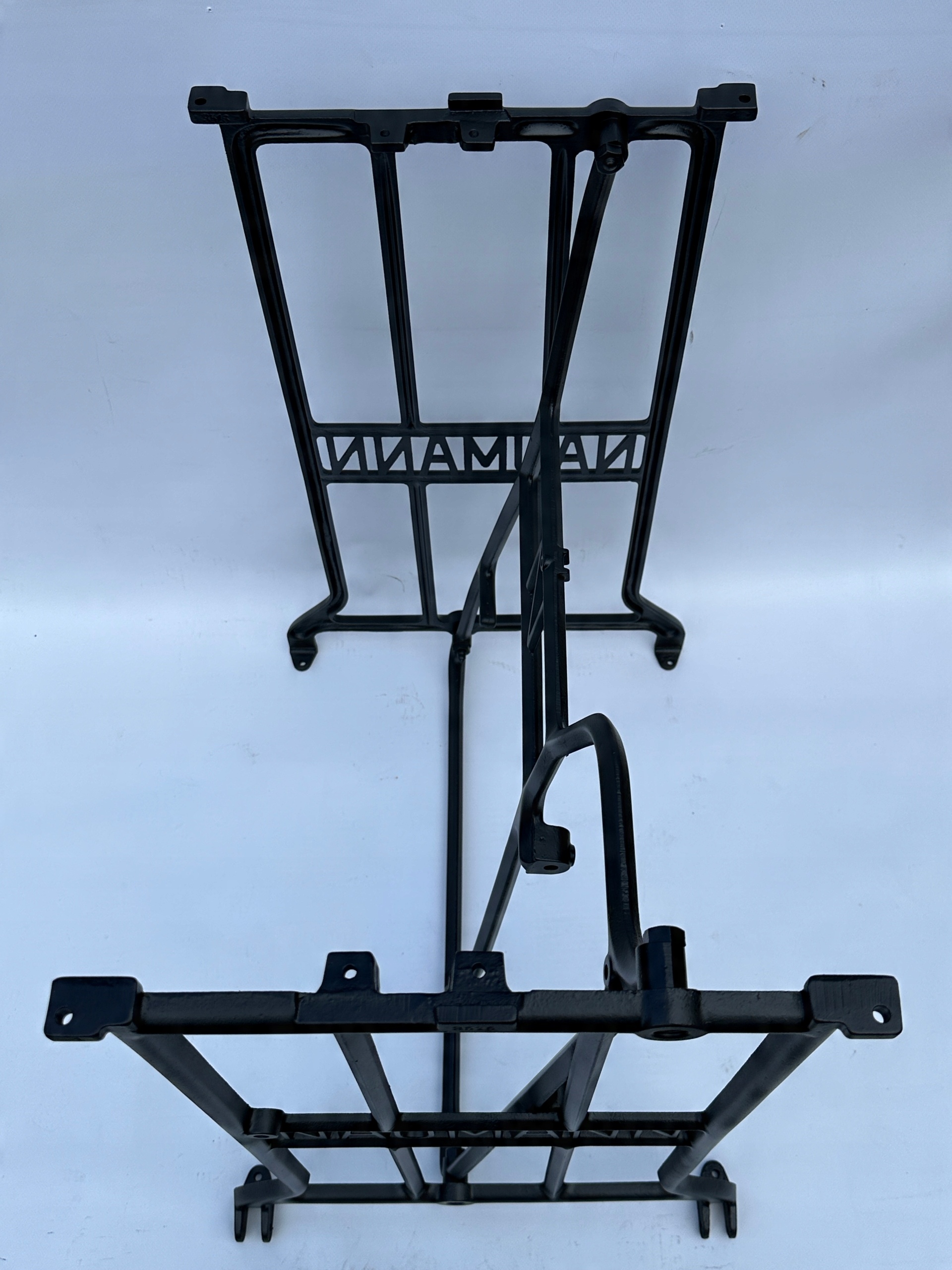 У верхній частині є 4 оригінальних отвори, до яких можна кріпити стільницю. Це видно на останньому фото. Стан - після професійного ремонту. Піскоструменева і пофарбована в чорний колір, як на фото - готова до установки. Після додавання верху він може служити, наприклад, комп’ютерним столиком. Якщо ви шукаєте щось оригінальне, цей аукціон саме для вас.
