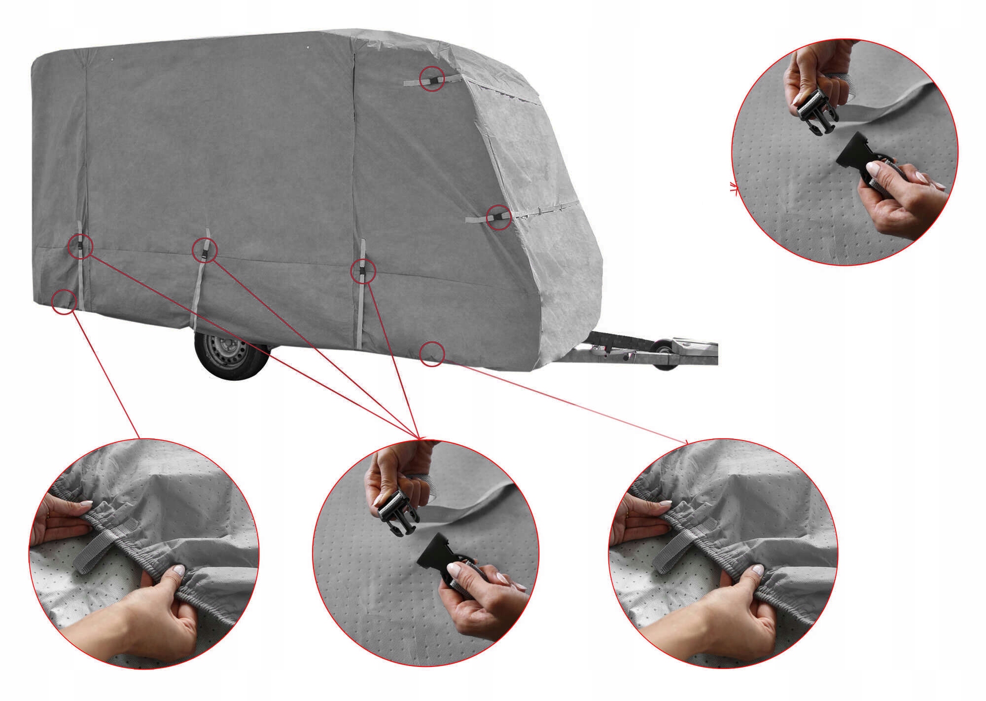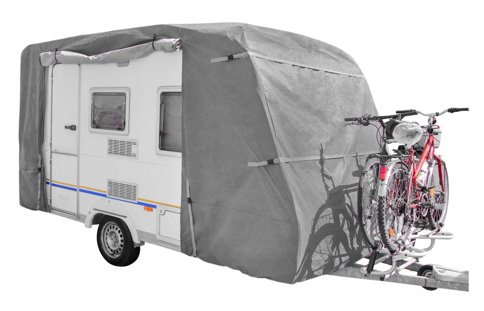 Чохол оснащено двосторонніми закритими блискавками, які полегшують входження в караван, не знімаючи чохол.