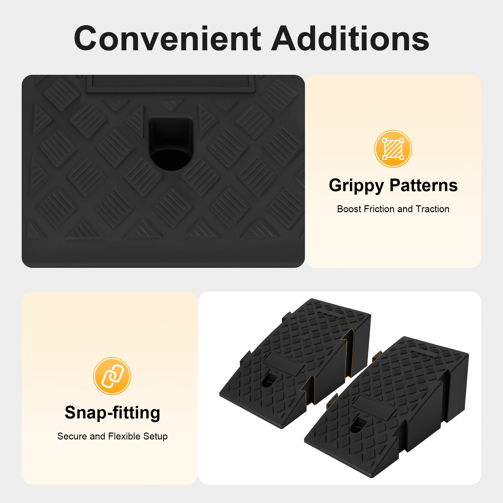 Підходить для доріг, входів у магазини, сараїв, гаражів, тротуарів, територій, під’їздів до шкіл/будинків та інших сходів, щоб полегшити велосипедам, автомобілям, мотоциклам, інвалідним візкам, скутерам та іншим транспортним засобам підйом і спуск по схилу.