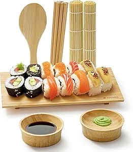 - Повний 16-частинний набір: Насолоджуйтесь розкішним досвідом суші-самих завдяки цьому повному 16-ти частинному наборі, що містить бамбукову тарілку в японському стилі, 2 килимки для кочення суші, чаші соусів, паличок, рисових плечей та інших.