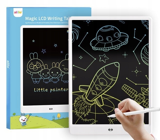 Чарівна освітня дошка Alilo LCD пропонує рішення, яке дозволяє дітям та іншим довгі години малювати та практикувати ручні навички. Він ультратонкий, портативний, екологічно чистий, а завдяки високій якості виготовлення дуже міцний і довговічний. Надзвичайно чутлива до тиску барвиста поверхня матриці дозволяє створювати яскраві зображення за допомогою стилуса, що входить у комплект. Вміст екрана можна видалити однією кнопкою. Великий екран допоможе вашій дитині розвивати творчі здібності, і в той же час він поміститься в її рюкзак для малювання, письма, передачі повідомлень вдома, в дитячому садку, в школі або... в офісі можливості безмежні!