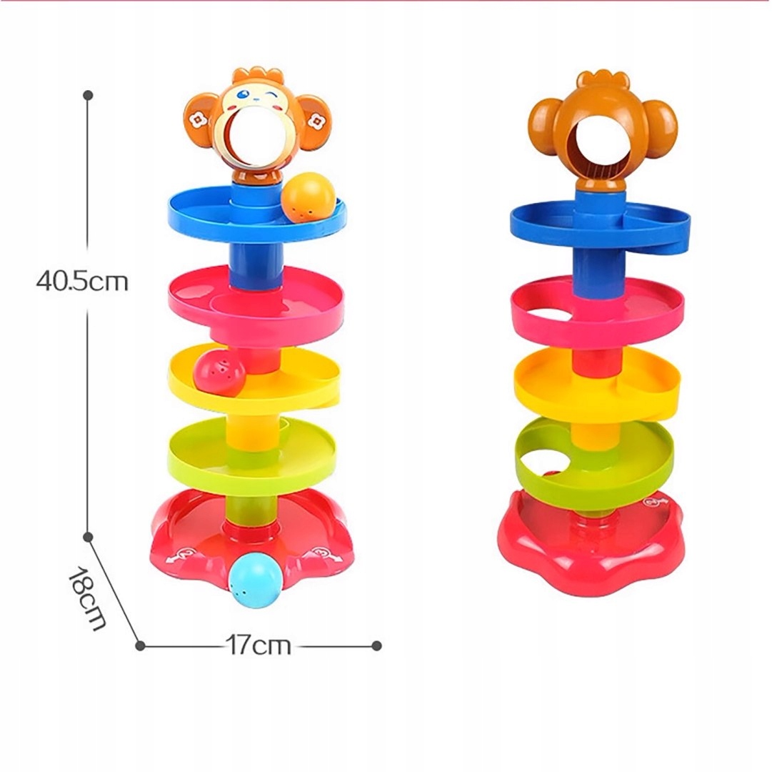 Діти молодшого віку можуть кидати кульки у вежу та спостерігати за їхнім рухом, а діти старшого віку можуть збирати та розбирати вежу. Різнокольорові сегменти можна з’єднати в будь-якому порядку, щоб створити низьку або високу вежу. Ця інтерактивна іграшка не лише розвиває моторику, але й стимулює почуття та допомагає зрозуміти принципи причини та наслідку. Завдяки привабливим звукам і яскравим кольорам вона заохочує дитину грати годинами.