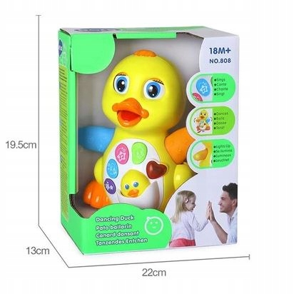 - СВІТЛОВІ ТА ЗВУКОВІ ЕФЕКТИ – іграшка має велику кількість світлових та звукових ефектів, які урізноманітнюють веселощі вашого малюка. Під час веселого танцю качка рухає ногами, дзьобом і крутиться на колесах. Слідкуючи за качкою, ваша дитина розвиватиме свої моторичні навички та рухатиметься все ефективніше.