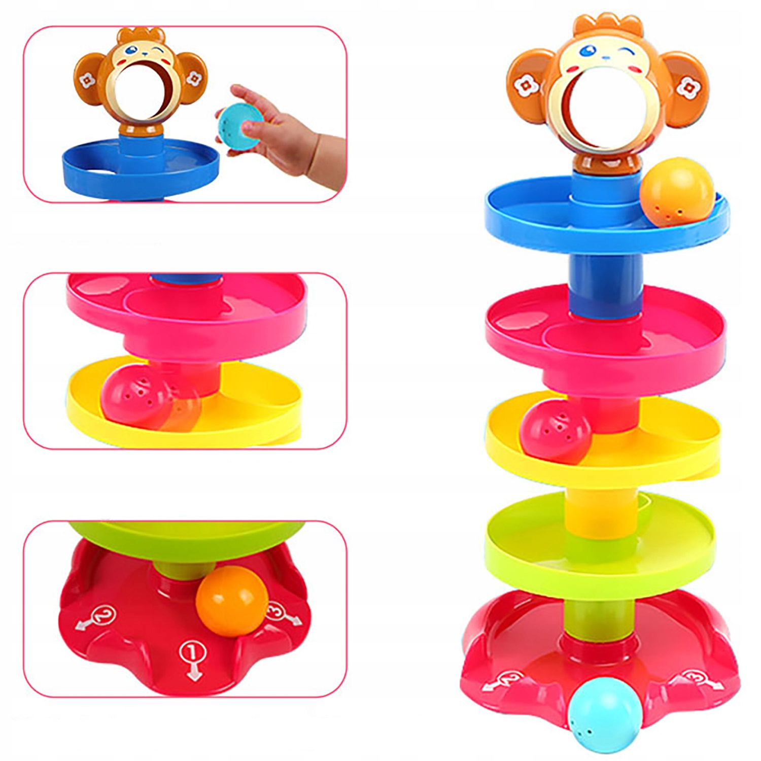 Діти молодшого віку можуть кидати кульки у вежу по черзі та спостерігати за їхнім рухом, а діти старшого віку можуть збирати та розбирати вежу. Різнокольорові сегменти можна з’єднати в будь-якому порядку, щоб створити низьку або високу вежу. Ця інтерактивна іграшка не лише розвиває моторику, але й стимулює почуття та допомагає зрозуміти принципи причини та наслідку. Завдяки привабливим звукам і яскравим кольорам вона заохочує дитину грати годинами.