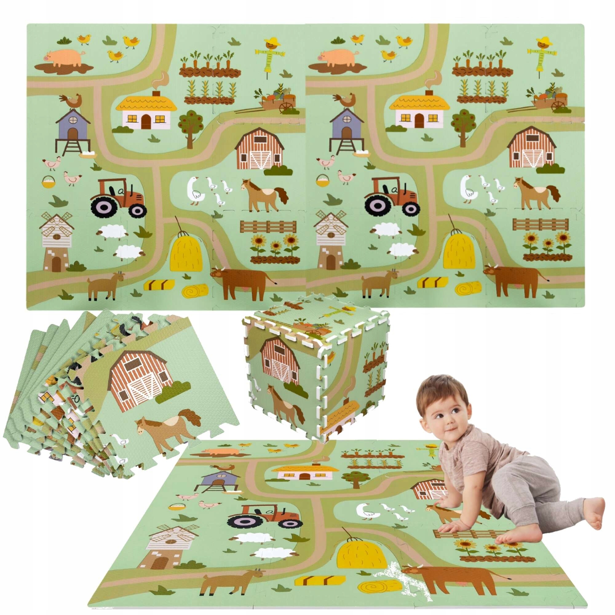 пінополоволомки знаходяться в пастелі кольорів , які не відволікають уваги дитини . Мат, безумовно, сподобається шанувальникам "автомобільної індустрії . У ньому є сільські дороги, курячий будинок, опудало, трактор, вітряк, сарай, будинок або домашні тварини, такі як свиня, кінь, корова, кури та півень . Різноманітний візерунок зробить це як гоночна доріжка для автомобілів , але також підходить для грати різні сцени за допомогою фігурки . Це буде ідеальним доповненням не тільки до кімнати , але і до ігрової кімнати , загальної кімнати , дитячого садка або шкіл . Форма головоломки дозволяє відповідати формі килимка до поверхні кімнати , завдяки чому Великий буде працювати навіть у невеликих або вузьких приміщеннях . Ходьба .