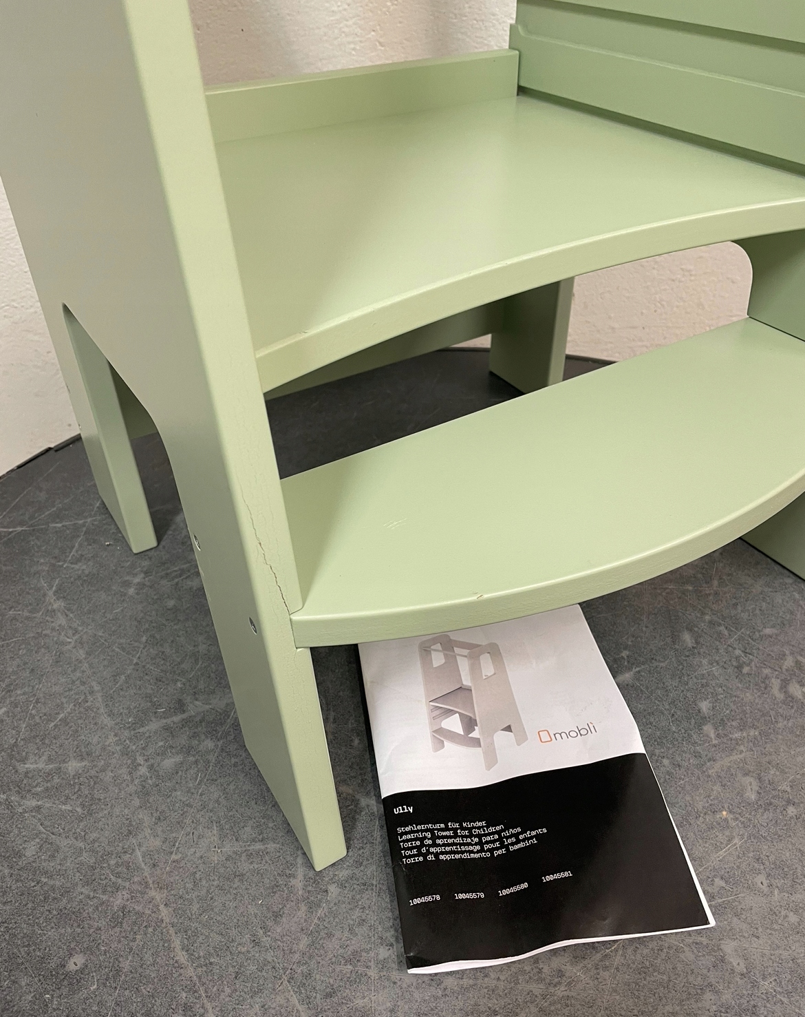 Допоміжний пристрій для лазіння Ully від mobli розроблений у формі драбинки та допомагає дитині зайняти безпечне, піднесене положення. Таким чином вони можуть дістатися до кухонних стільниць, стільниць або раковини у ванній без сторонньої допомоги, що заохочує незалежність. Ручки та поручні забезпечують безпеку та стабільну підтримку. Навчальні вежі повністю виготовлені з надзвичайно міцних МДФ плит. Кути і краї закруглені. Платформу можна встановити на три різні висоти - 28, 34 і 40 см - так що вежа для скелелазіння росте разом з дитиною.