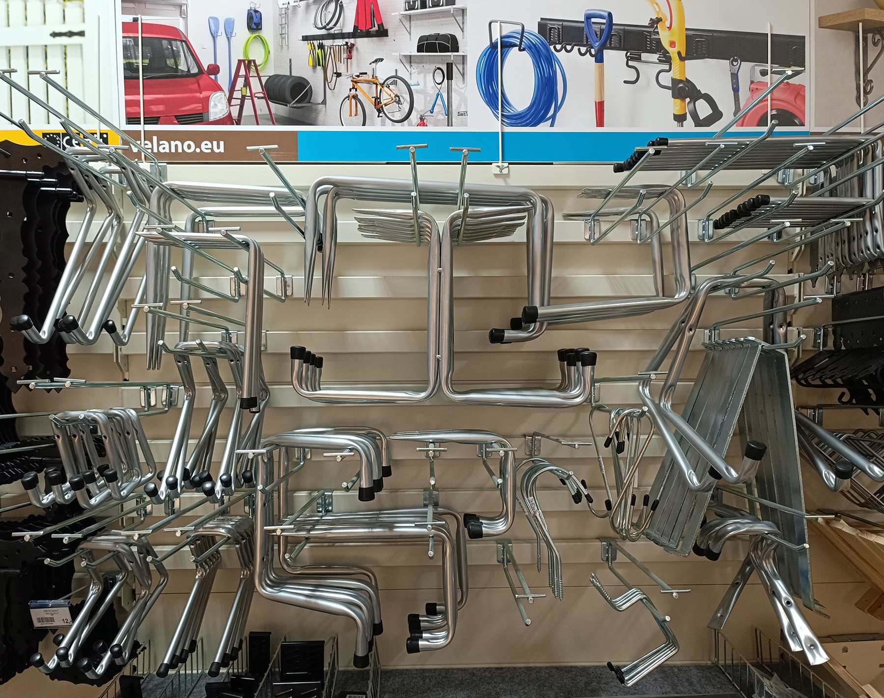 гачок, створений для любителів серфінгу, які зберігають дошки Віндсерфінгу в гаражі. Пропонується використовувати два гачки для стабільного зберігання обладнання.