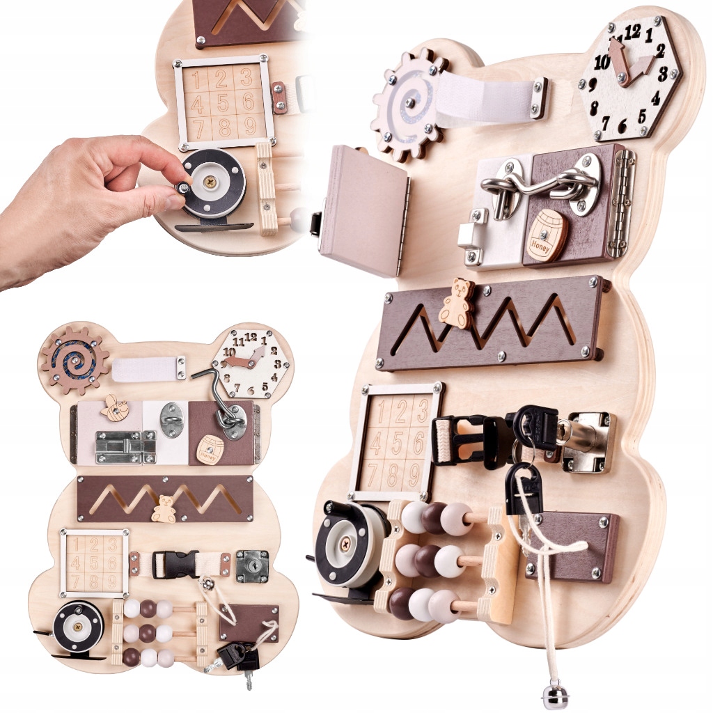 НАВЧАЛЬНА СЕНСОРНА ДОШКА ДЛЯ ДІТЕЙ MONTESSORI BEAR 14IN1