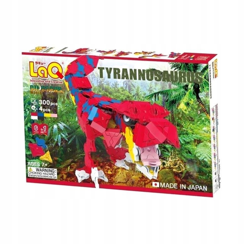 300 деталей; 4 спеціальні частини Hamacron; 6 схем побудови: «Тиранозавр», «Археоптерикус», «Діноніхус», «Карнотавр», «Плезіозавр», «Анкілозавр». 6 кольорів; Рекомендований вік: 7+ Рівень складності: Жорсткий; Деталі LaQ можна використовувати багаторазово, і набір можна використовувати для відновлення до 6 різних моделей різної складності. ЗРОБЛЕНО В ЯПОНІЇ