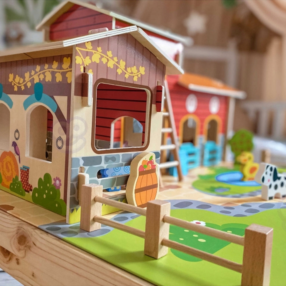 НАВЧАЛЬНІ ДЕРЕВ'ЯНІ БЛОКИ MONTESSORI - СЕЛО, ФЕРМА, ТВАРИНИ, СТІЙЛЯ, XL