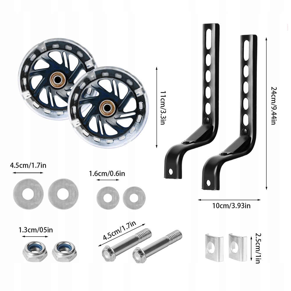 【non -slip і тихий】 Наші додаткові велосипедні колеса виготовлені з високоякісної металу, пластику та гуми. Вони не змихаються і мовчать, щоб ваша дитина могла їздити безпечніше і стабільніше, не турбуючись ні про що. (Екологічно чисті матеріали, придатні для повторного використання)