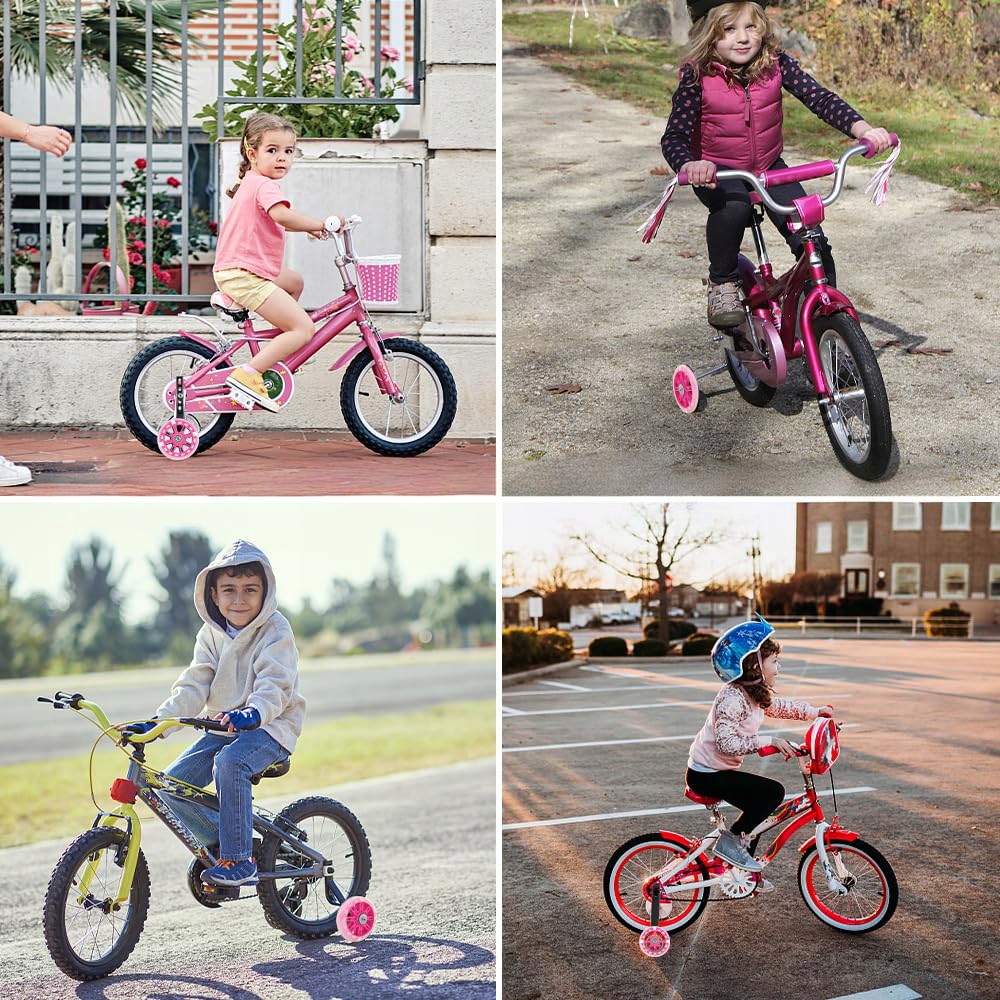 【Легко зібрати】Наші тренувальні колеса легко зібрати та постачаються з різними аксесуарами. Тому просто встановіть бічні колеса зі стійками, щоб діти могли безпечно користуватися велосипедом.
