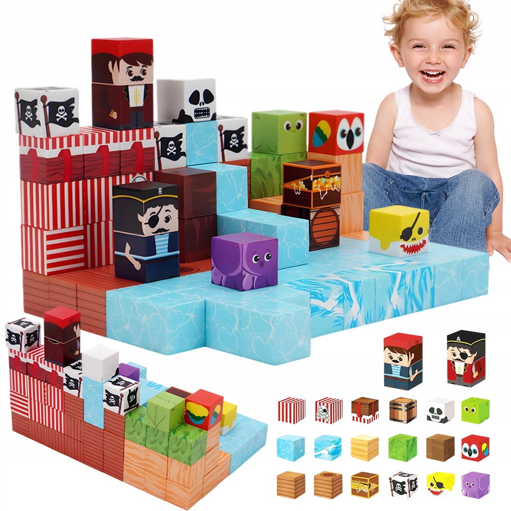 🔥 магнітні кубики для дітей, іграшка-пірат, розвиваючий конструктор, подарунок для хлопчика 3+, морські кубики, іграшка STEM, безпечні великі кубики, творчий набір, магнітні кубики 100 шт, подарунок на день народження