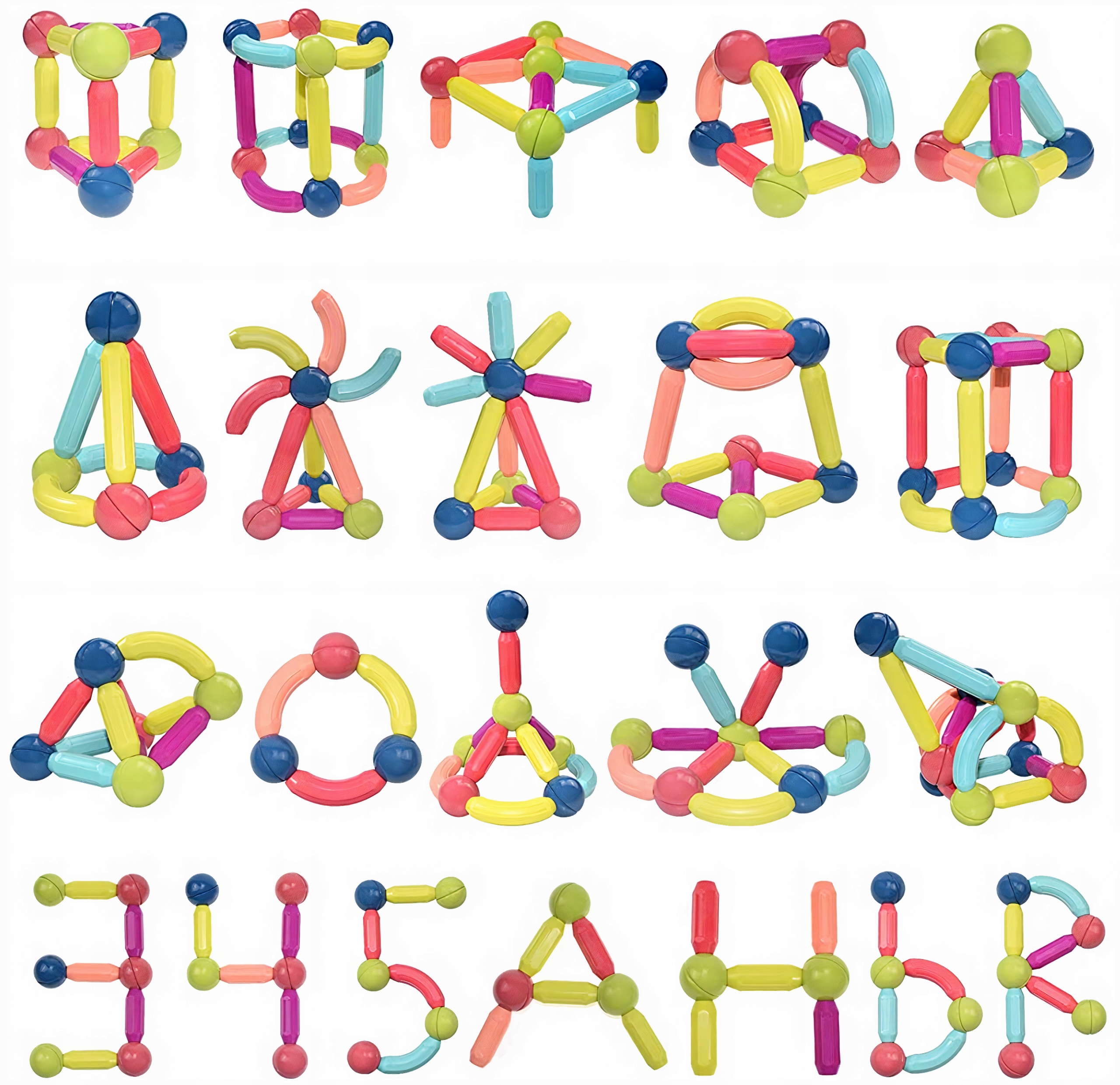 Магнітні будівельні блоки мають вбудовані спеціальні магніти, завдяки яким окремі елементи з’єднуються один з одним із значною міцністю, дозволяючи будувати просторові структури, в тому числі дуже незвичайних форм . Можливе 2D і 3D будівництво!
