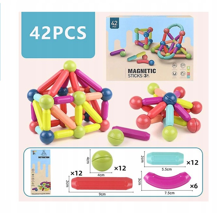 Різнокольорові магнітні блоки 42 елементи - це пропозиція для кожної дитини, яка любить будувати тривимірні фігури.