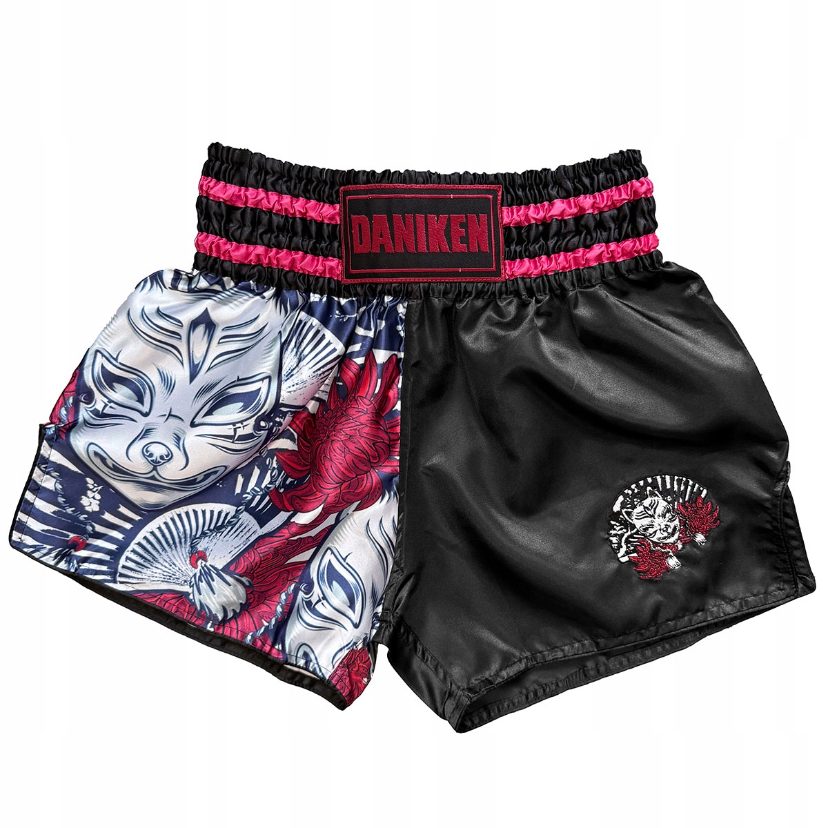 шорти виготовлені з високоякісного атласу, 100% поліестеру. Чорні шорти, нова графіка, зроблена з сублімацією з логотипом Данікена в талії. У них є щілини з боків, що забезпечує комфорт та свободу руху при розкопках. Дуже широку гуму була пришита на талії - 9,5 - 9 см і струну. На одній нозі є вишивка. Усі шорти daniken є моделями unisex - вони підходять як для чоловіків , так і для жінок . Протягом декількох років ми адаптували продукт, щоб він задовольнив усіх! Шорти в невеликих розмірах також ідеально підходять для дітей!