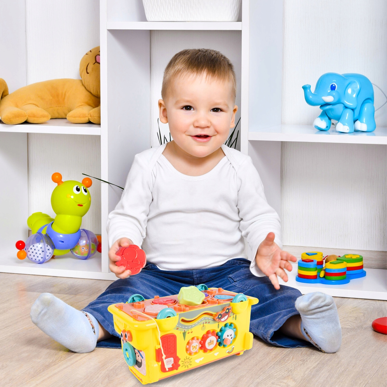 Завдяки цій інтерактивній функції ваш дитина може досліджувати і досліджувати світ форм і кольорів. Під час гри він має можливість розвивати свої ручні навички та вдосконалювати свою здатність розпізнавати форми та кольори, як справжній маленький дослідник.