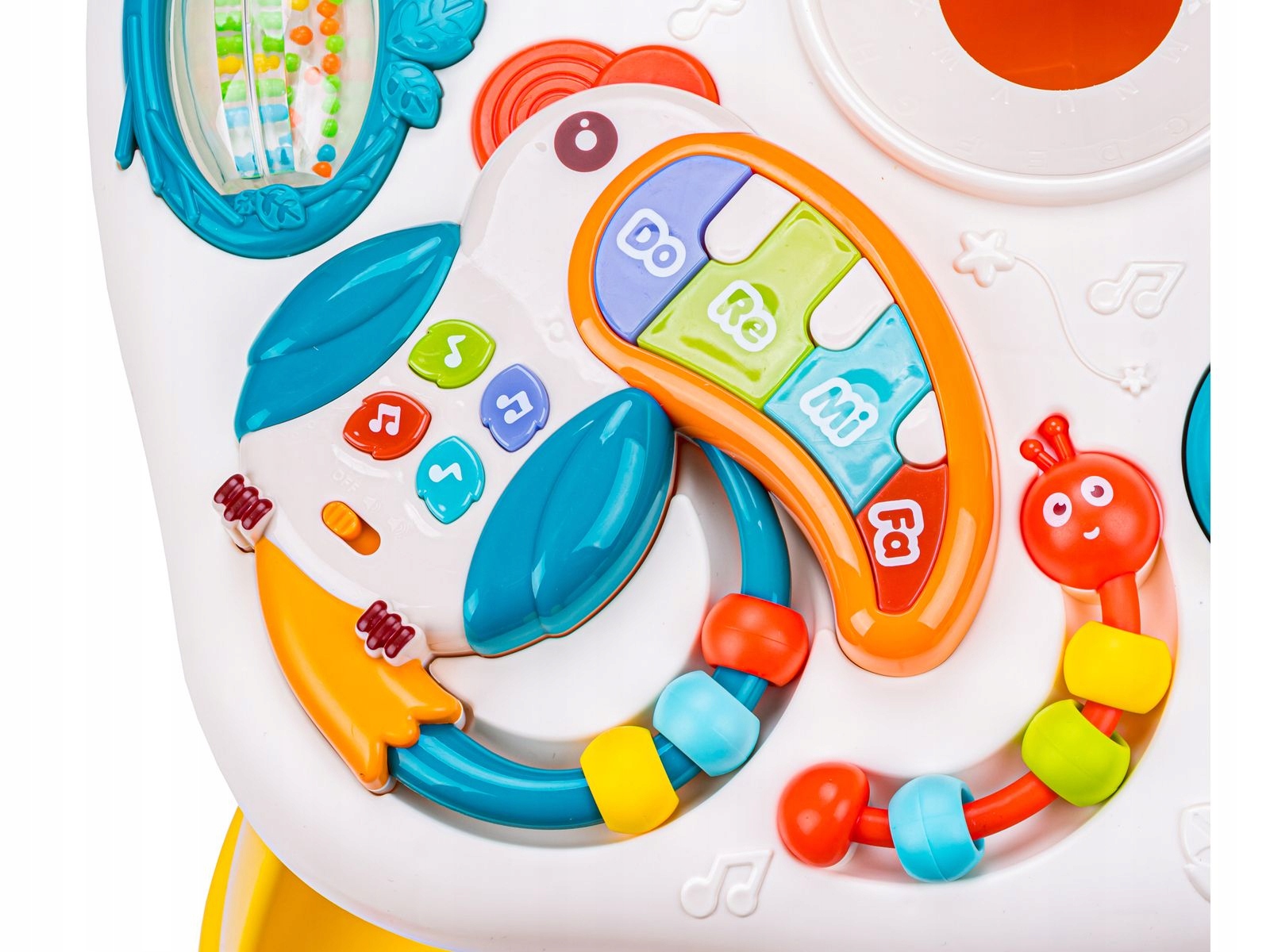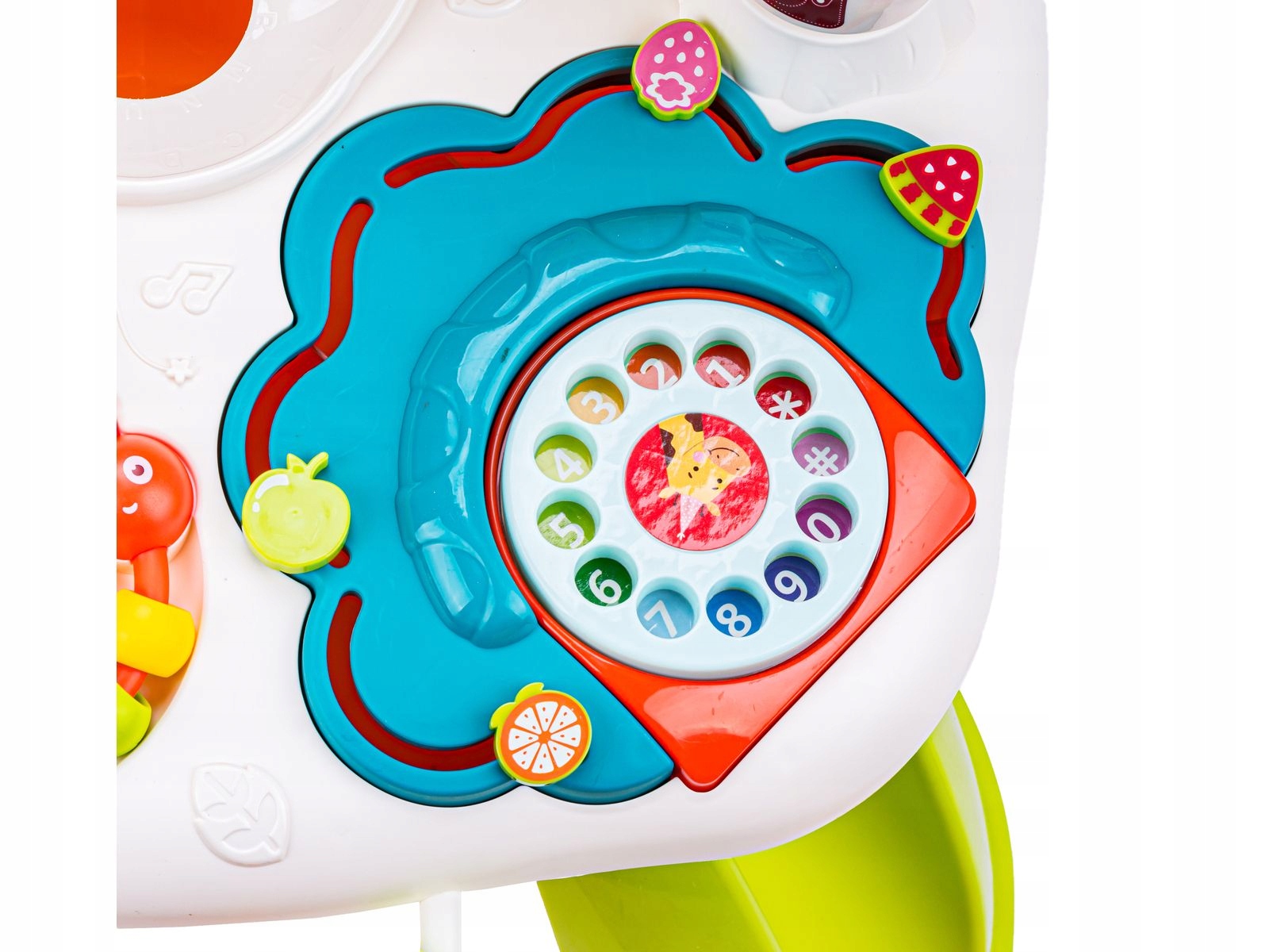 - Інтерактивний навчальний столик для дітей — це іграшка, яка забезпечить вашому малюкові багато годин чудових розваг і навчання. На столику багато атракціонів, таких як міні-орган з 8 музичними кнопками, рухливий метелик для вивчення кольорів, гусениця з намистинками, рахівниця, брязкальце, шестерінки, баскетбольна корзина, гірка з м'ячем і левеням, фруктовий куточок і обертовий циферблат з цифрами. Іграшка розвиває ручні навички, координацію рухів, творчі здібності та логічне мислення дитини. Виготовлений з матеріалів найвищої якості, забезпечує безпеку та комфорт використання. У набір входить стіл, 3 кулі та оригінальна упаковка. Продукт підходить для дітей старше 18 місяців. Завдяки такому столу діти не тільки весело проведуть час, а й розвинуть процес навчання.