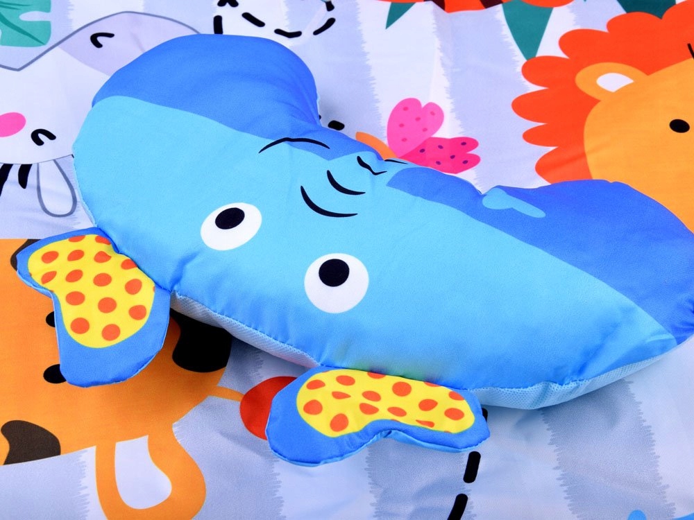 - як килимок - корисно, коли дитина ще не може сидіти наодинці. Лежачи на спині, він може тягнутися до іграшок і практикувати здатність захоплювати іграшки, лежачи на животі, зміцнює м’язи хребта, що позитивно впливає на пізніший ставлення.