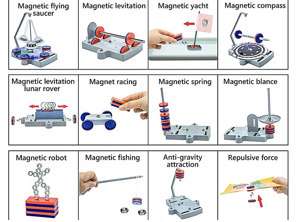 Навчальна наука про магніти 12in1. Набір для самостійних та будівельних експериментів -це пропозиція для кожної дитини цікавого світу. Набір дозволить дитині виконати кілька досвіду та знати, яке магнітне поле, привабливість, відштовхування.
