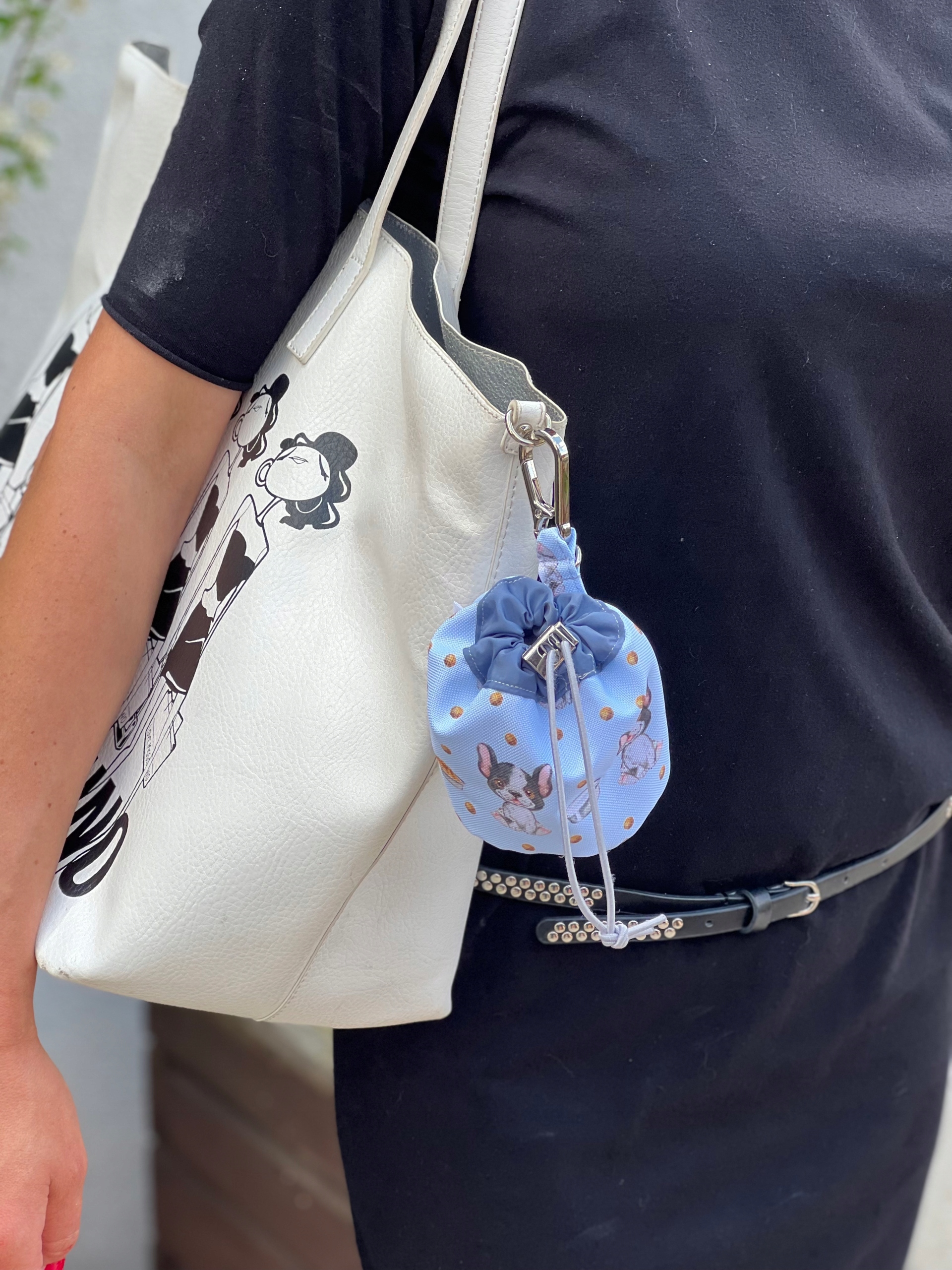 Стильний мішечок для делікатесів bytoffik ідеально підходить для всіх прогулянок. Виготовлений з водонепроникної тканини проходить іспит протягом кожного сезону. Завдяки карабінеру та спеціально пришиті петлі, легко прикріпити його до повідку, гаманця або пояса. Також входить до встановленого регульованого ременя, який дозволяє самостійно носити мішок.