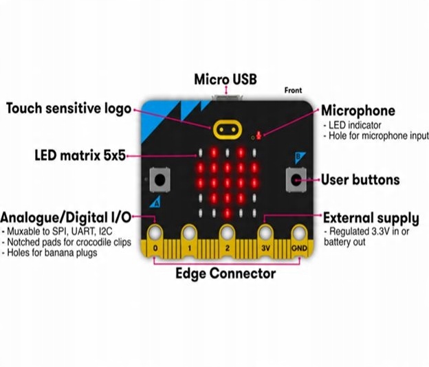 Micro:bit – це кишеньковий комп’ютер, який дозволяє кодувати, налаштовувати та втілювати ваші цифрові ідеї та ігри. Його розміри становлять лише 4x5 см, він характеризується веселим і дружнім дизайном, завдяки якому користувач може створювати ігри, анімації, розсувні історії - все, що потрібно, це уява та креативність. Він повністю програмований. Кожен світлодіод, кнопки, входи та виходи, акселерометр, магнітометр, технологія Bluetooth 5.0, мікрофон і динамік можна запрограмувати окремо.