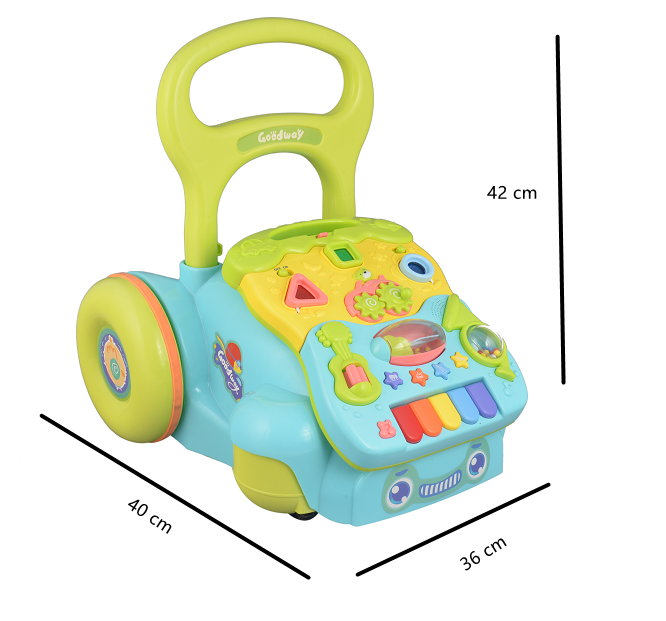 запропонований вік : з 10 місяців як штовхач; З 6 -го місяця як музична іграшка (після блокування коліс)