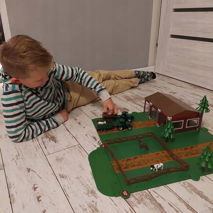 - матеріал: ABS, інші: PP + TPR; з тваринами (ПВХ) + деревами (ПП) + 2 сільськогосподарськими автомобілями матеріал: ABS, інші: PP