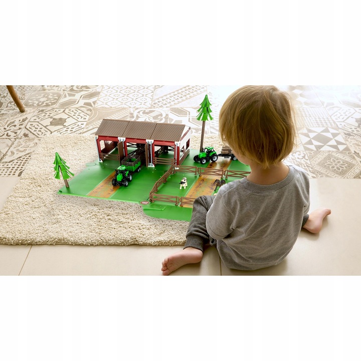 Набір містить 102 елементи, зібрані з яких створять справжній фермерський будинок. Серед них: дерева, паркани, трактори, стайня та тварини. Це буде ідеальна іграшка для кожного маленького фермера. Набір виготовлений з високоякісного пластику, який легкий і водночас міцний.