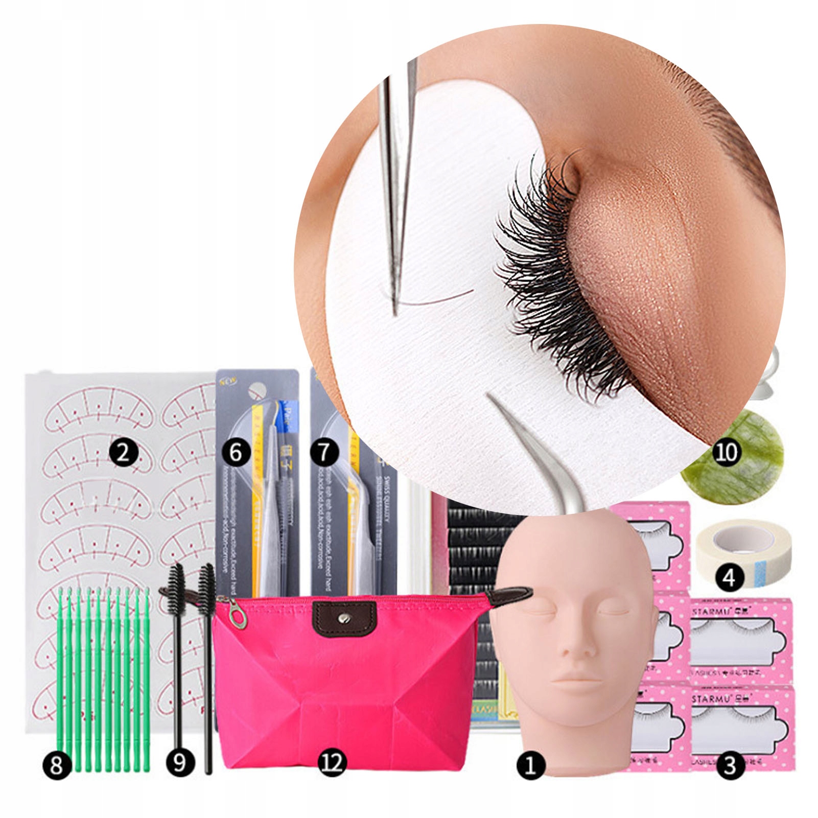 1. Пакет включає: Поставте головку вправ, 5 пар вії, стрічка з подовжувачем вії, 1 одинарна коробка для вій, 2 пінцетів, 10 бавовняних кульок тощо.