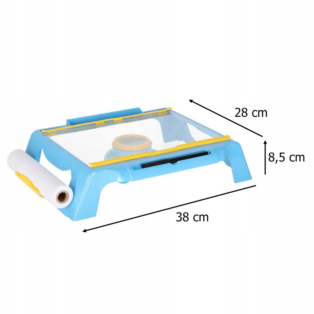 У набір входить стійкий стіл для малювання - завдяки йому дитині зручно створювати свої роботи. Стіл з проектором був розроблений для забезпечення комфорту та безпеки під час гри. Завдяки столику ваша дитина може малювати, розфарбовувати та малювати де завгодно. Рулон паперу для малювання (підходить для формату A4) дозволяє нескінченно творити, а 12 кольорових фломастерів і кольорових олівців дозволяють вибирати кольори відповідно до власних ідей. Гра з набором проста та інтуїтивно зрозуміла - просто вставте слайд із зображенням, налаштуйте проектор і можете починати гру! Увімкнення проектора супроводжується делікатним світлом, яке ідеально підкреслює візерунок, який потрібно накреслити.