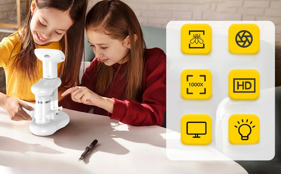 Насолоджуйтесь великою, чіткою якістю зображення та реалістичними кольорами завдяки нашому найсучаснішим мікроскопом із збільшенням від 50 разів до 1000x. Зробіть приголомшливі фотографії та записуйте фільми, відкривши своїх дітей та насолоджуватися їх науковою подорожжю в найближчі роки.