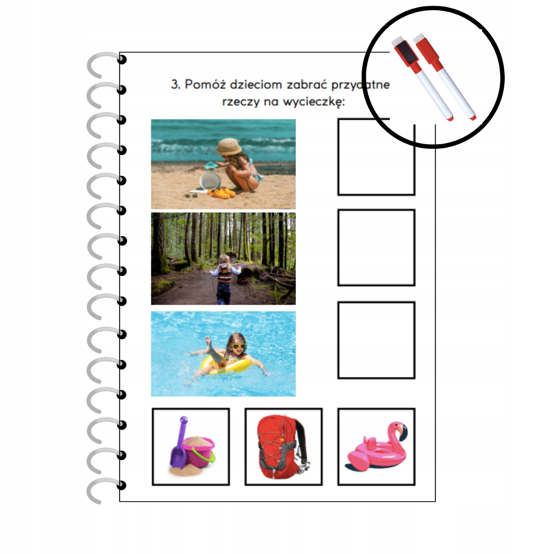 - Дитина виконує завдання, прикріплюючи картинки на липучках і переміщаючи їх у відповідне місце відповідно до інструкцій або писання маркером, що стирається