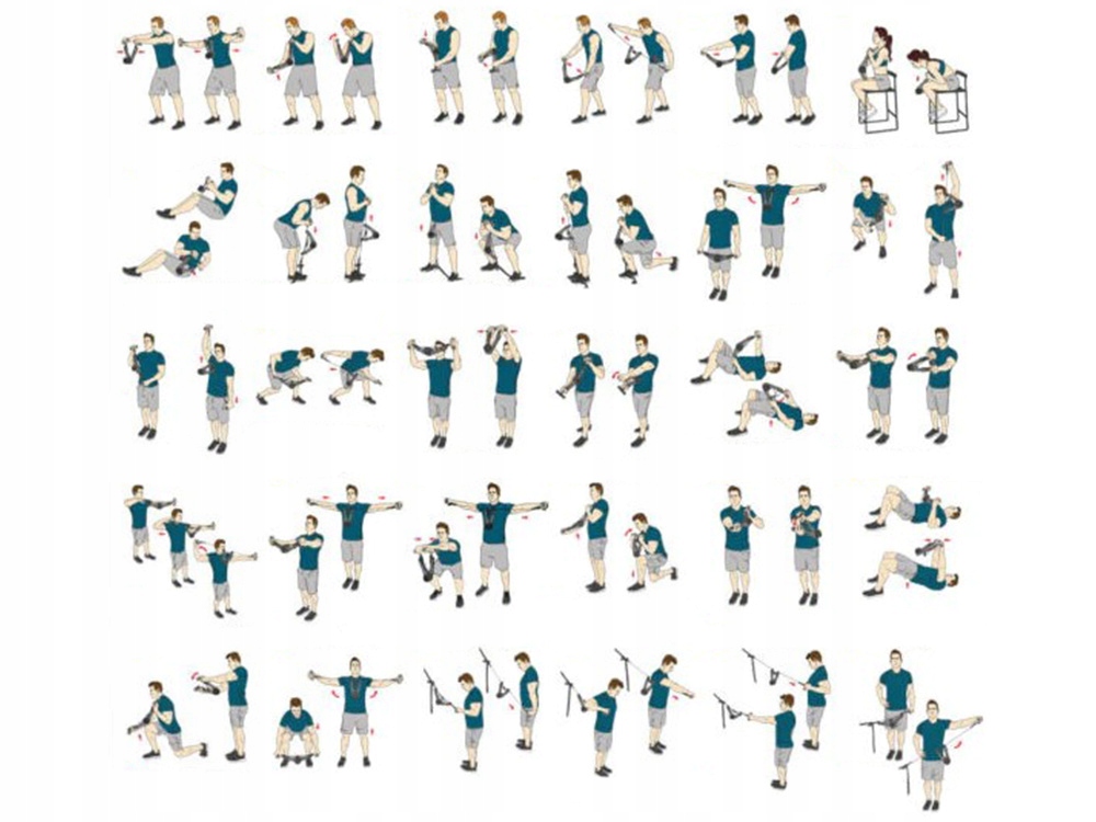 Навчання з нашим розширювачем надзвичайно приємне та ефективне. Ви можете це зробити практично в будь -якому місці. Пристрій під час тренувань забезпечує активацію протилежних м’язових груп під час одного руху, що дозволяє побудувати стійку фігуру. Крім того, нам не потрібно стояти прямо, ви можете робити вправи у всіх планах руху.