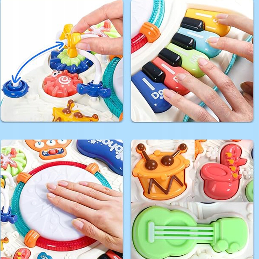 🧁Іграшка для дітей віком від 1 року: Це інтерактивний і веселий, багатофункціональний ігровий столик для дітей віком від 1 року. Ідеально підходить як інтерактивний інструмент для занять батьків і дітей. Батьки можуть навчити своїх дітей цифрам, буквам і назвам музичних інструментів і виховати у дітей розуміння та інтерес до музичних інструментів. Ви також можете весело провести час сім'єю. Підходить як іграшка для дітей від 1 до 23 років.