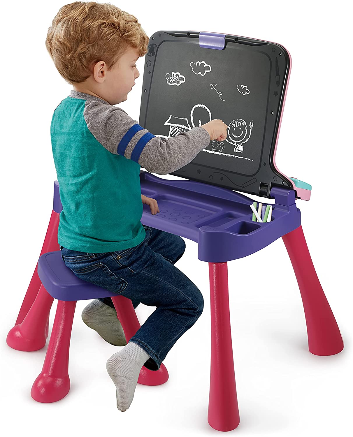 - 5 разів веселіше: інтерактивний стіл можна перетворити на крейдяну дошку чи мольберт і вражає проектором, сенсорною поверхнею та дошкою для писання з ручкою