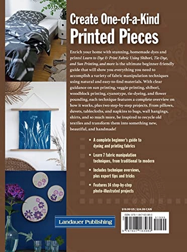 Дізнайтеся, як пофарбувати та друкувати власний текстиль! Посібник для початківців для майстрів усіх рівнів, щоб навчитися фарбувати та друкувати текстиль, щоб зробити один-F-A-A-A-Home Décor, одяг та аксесуари 7 Популярні методи фарбування та друку: Sun Print, Veggie Print, Shibori, Wooden Models, Cyanotype, Крок за кроками, що стукають квітами, з координацією висококваліфікованої автора фотографії Елізабет Беркау також є автором моди Batik і розміщується в журналі Elle Defration, Living та багато іншого, архітектурного дайджесту та інших публікацій Щоб пофарбувати та роздрукувати власний текстиль та створити приголомшливі акценти домашнього декору, одяг тощо! Навчіться фарбувати та друкувати тканину за допомогою шиборі, краватки та друку Sun-це остаточний посібник, сприятливий для початківців, який покаже вам усе, що потрібно знати, щоб здійснити сім різних методів маніпуляції з тканини від сонця та овочів, що проходять до Шиборі, Ціанотип, дерев’яні моделі та стукіт квітки. З покроковими інструкціями та координацією фотографії ви побачите, наскільки легко і весело перетворити старі аркуші, таблиці, футболки та більше в чудові, один--а-дружні друковані твори! Автор Елізабет Беркау завершує учень як ткач та текстильну дизайнер із сертифікатом мандрівника. Вона є автором Batik Fashion та інших текстильних книг, і вона була представлена в журналі Elle Decoration, Living More Magazine, Freundin, Architectural Digest, Brigitte, Landlust та інших публікаціях. Навчіться фарбувати та друкувати тканину за допомогою Shibori, Tie -Dye та Sun Print - це цікавий, захоплюючий, на тренд -путівник, який робить ідеальний подарунок для сучасного сучасного майстра! Сторінки: 120