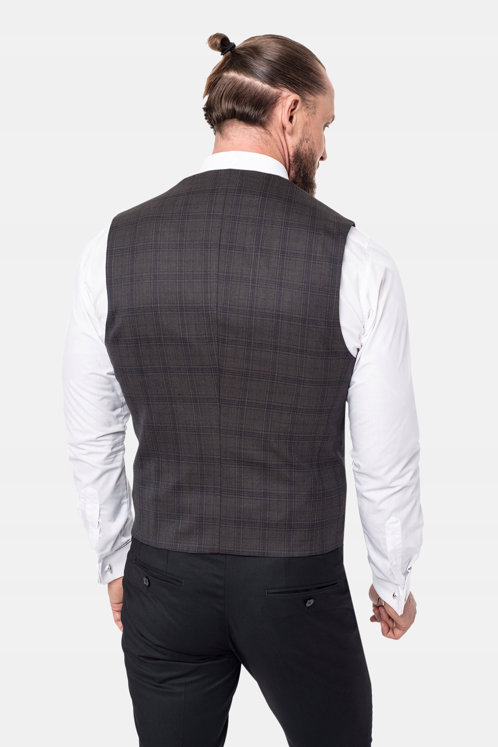 - жилет з тканини з класичною решіткою з додаванням граната, сливи та темно -коричневого.