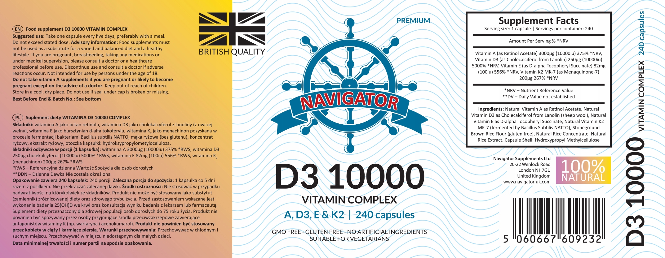 Навігатор Вітамін D3 10 000 Вітамінний комплекс IU 240 капсули + вільні