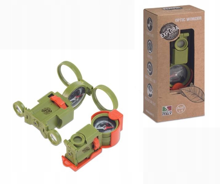 Завдяки вбудованому компасу ми завжди знайдемо напрямок. Дзеркало дозволить передавати світлові сигнали, а лупа (збільшення в 2 рази) і бінокль стануть в нагоді кожному юному мандрівникові та досліднику.