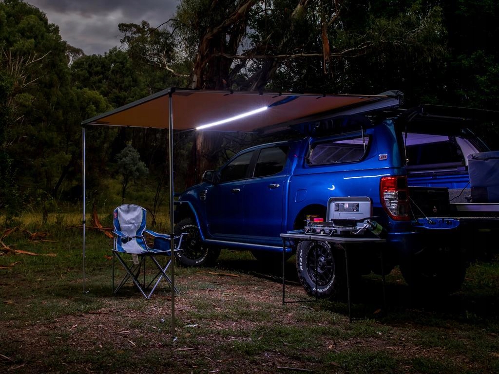 Останній варіант (2021) даху австралійської компанії ARB розміром 2,5 х 2,5 метри в чорному алюмінієвому корпусі зі світлодіодним освітленням ARB.