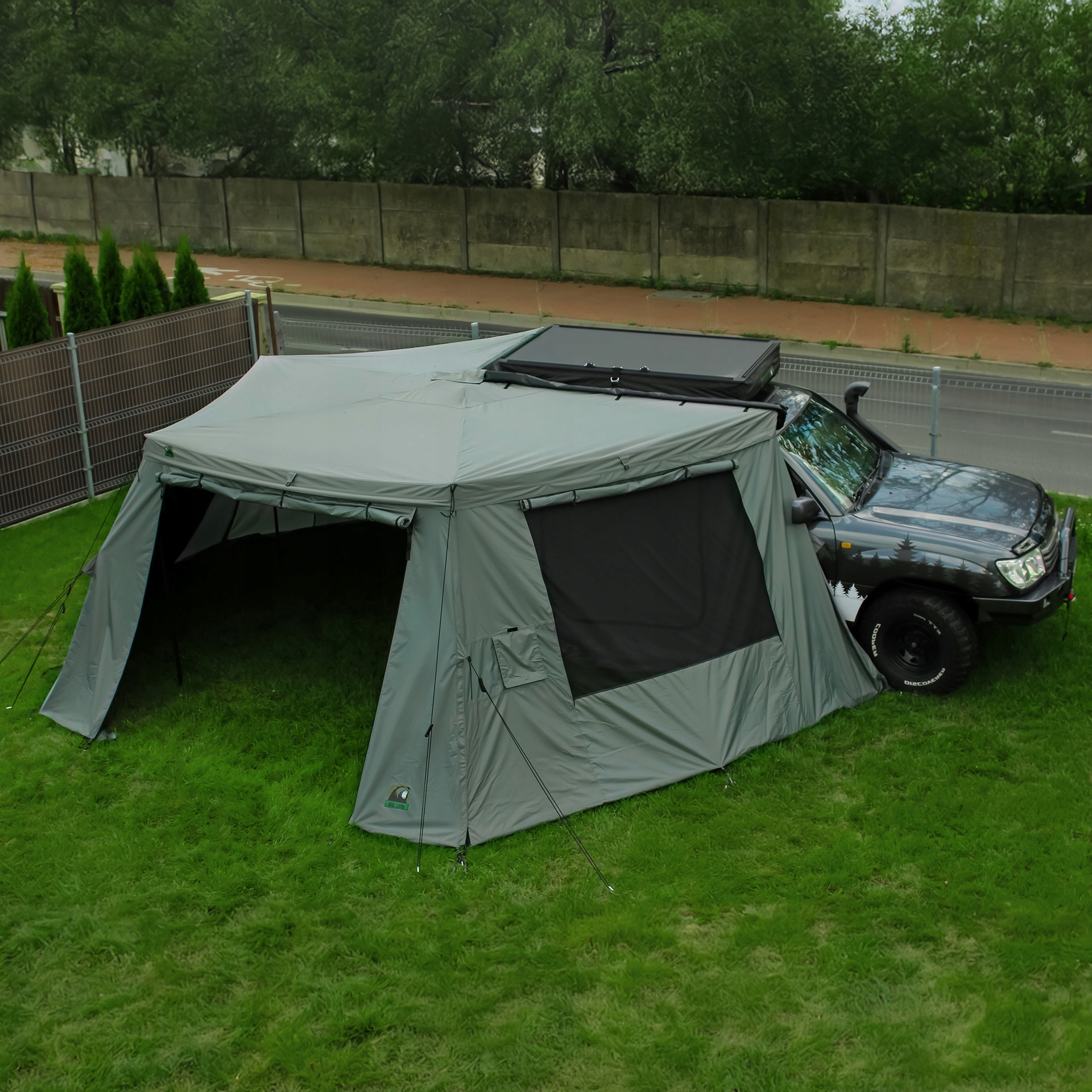 Таке широке покриття захищає від сонця та дощу, забезпечуючи легкий доступ до багажника та інших частин автомобіля, наприклад кухні , що особливо важливо під час тривалих подорожей або кемпінгу.
