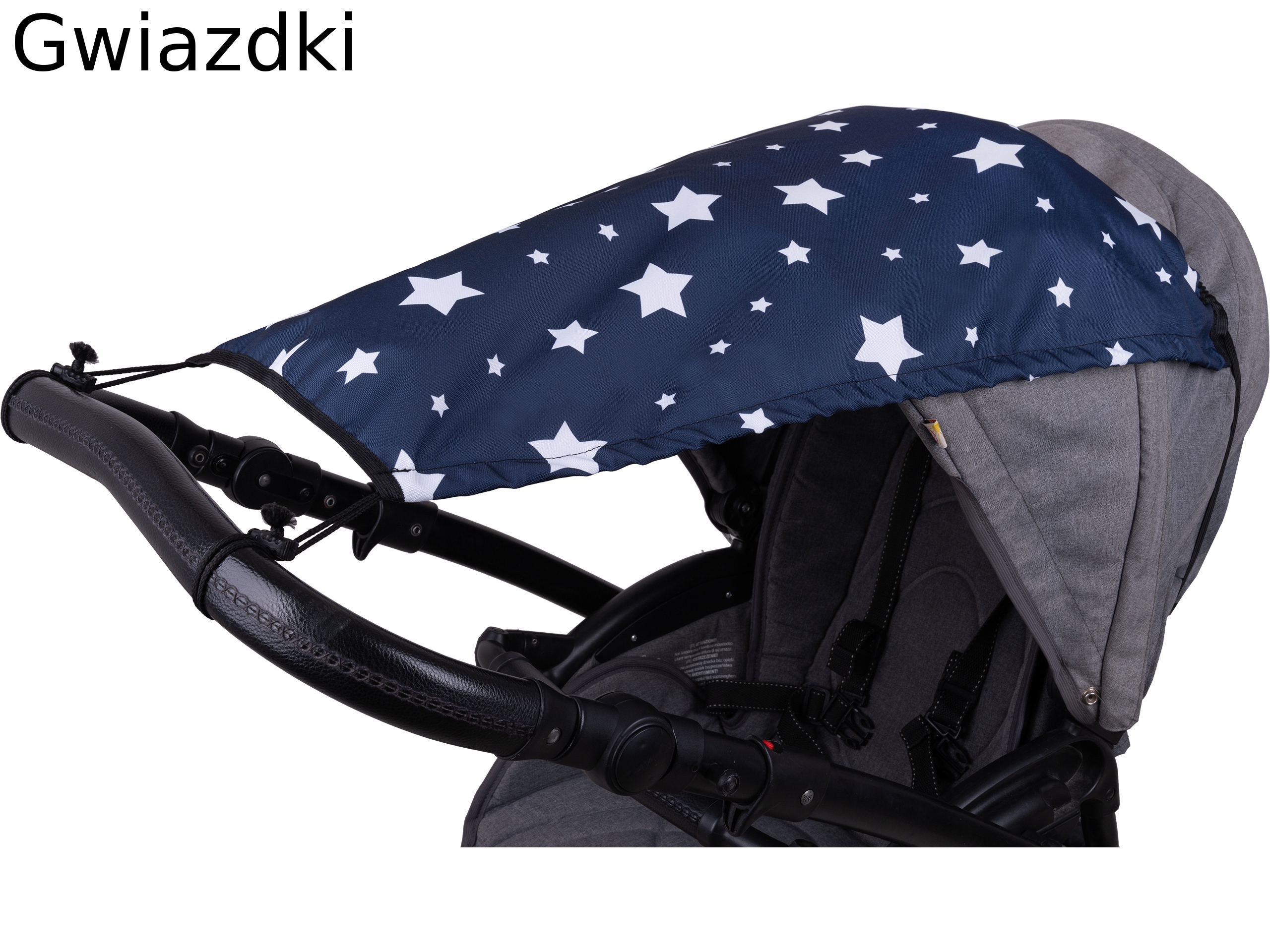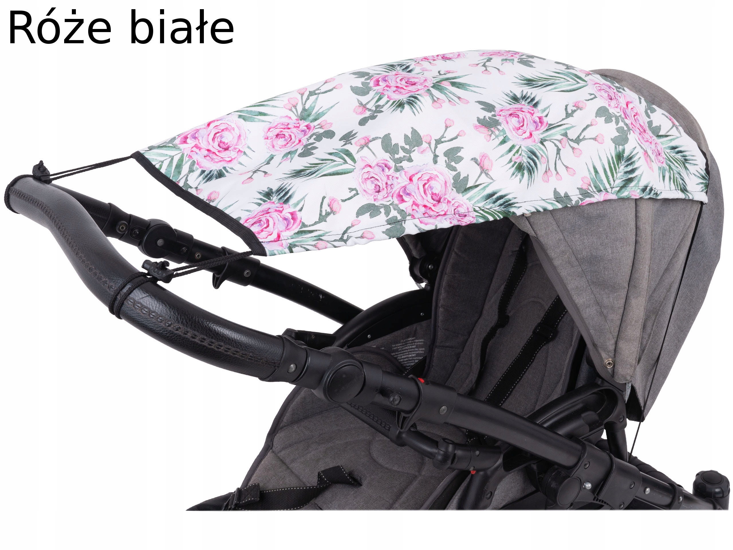 Навіс кріпиться за допомогою еластичної стрічки, яка проходить через навіс. Спереду прив'язується двома шнурками до ручки коляски. Додатково козирок можна регулювати за допомогою шнурка і стопорів. Залежно від кута сонячних променів, ви можете зрушити кришку вбік, відрегулювавши її за допомогою мотузок і гуми