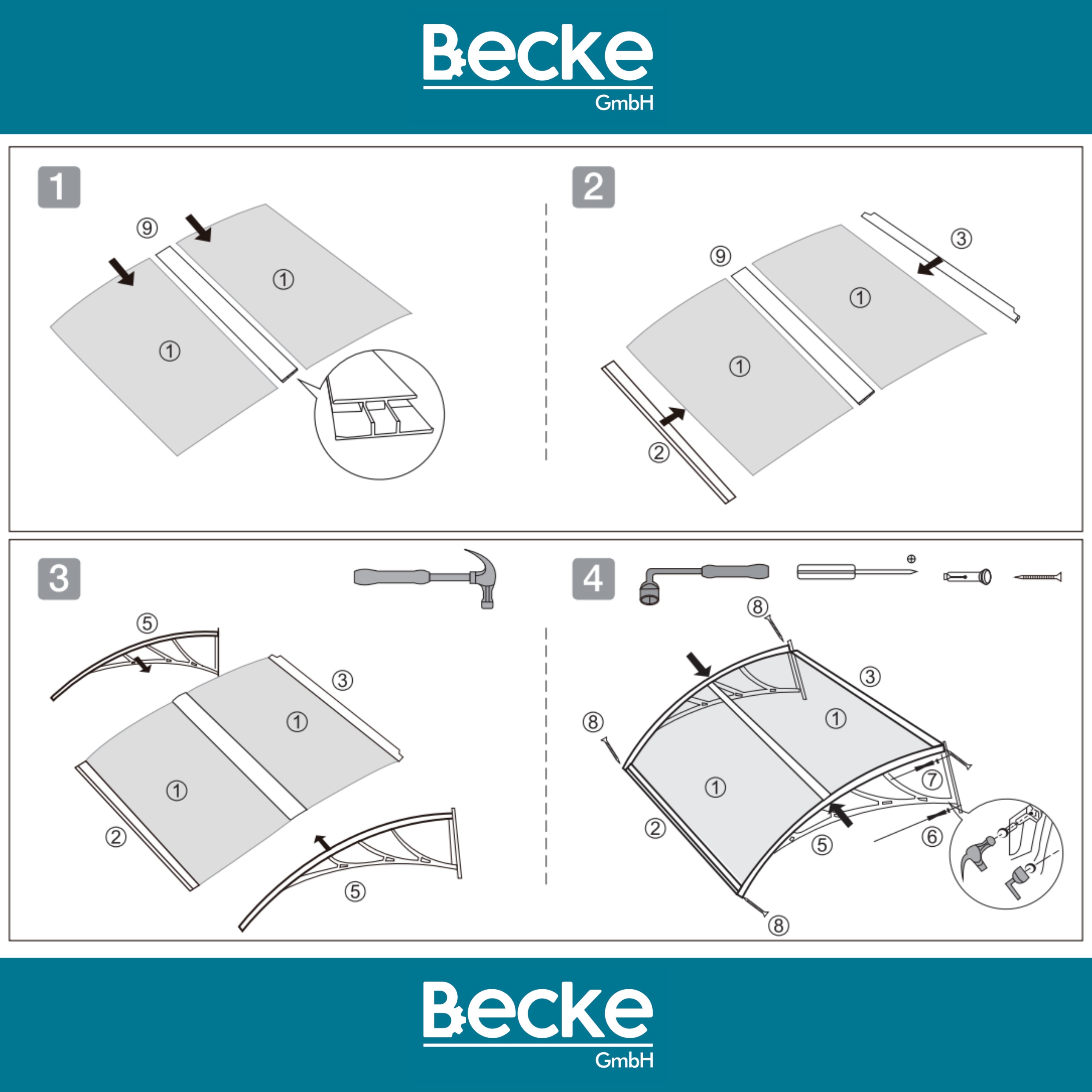 Навіс був розроблений з урахуванням гнучкості - його модульна структура дозволяє об'єднати кілька елементів в один довший комплект. Однак, щоб таке з’єднання було реальним і функціональним, всі дахи повинні мати однакову глибину – тільки тоді їх можна правильно з’єднати. Незалежно від ширини входу або площі балкона, ви легко зможете підлаштувати дах під свої потреби. Кожен сегмент забезпечує міцність конструкції та естетичний вигляд, що дозволяє створити рівномірну захисну лінію на більшій площі. Це ідеальне рішення як длябудинків, так і для комерційних будівель.
