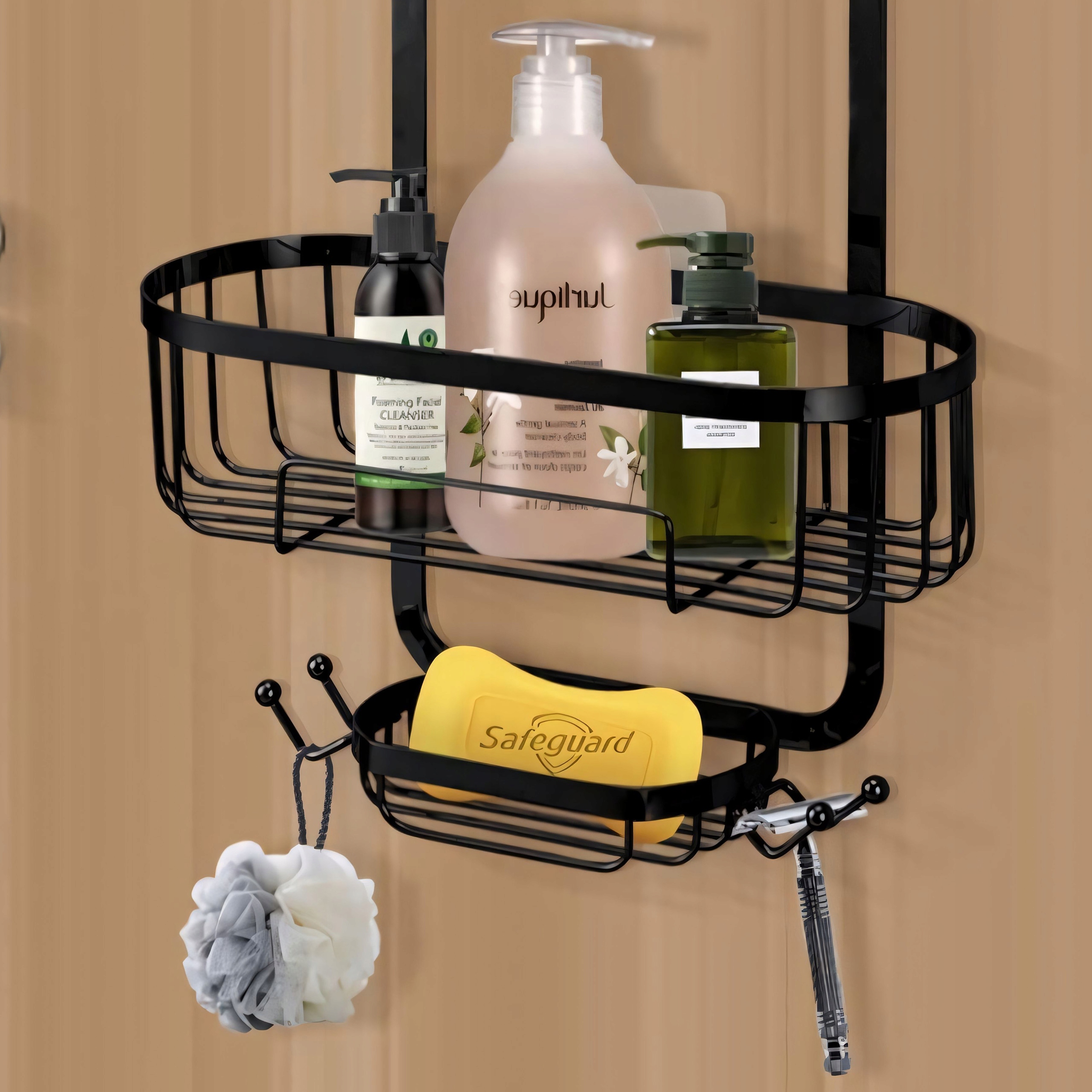Вішалка для душу оснащена 2 місткими кошиками, в які можна легко помістити більші пляшки з рідиною для ванн або шампунем. Крім того, ви знайдете менший кошик, ідеальний для зберігання мила. Завдяки такому практичному рішенню всі ваші банні приналежності матимуть своє відведене місце, що дозволить краще організувати простір у ванній кімнаті.