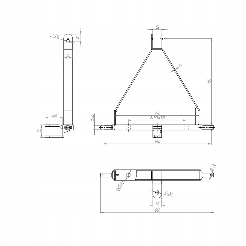 Заднє навішування з посиленою конструкцією. Гарантує довговічність у зовнішніх умовах. Характеризується простим монтажем, високим рівнем безпеки та сумісністю з багатьма моделями тракторів. Завдяки цьому він зменшує витрати на технічне обслуговування та забезпечує ефективне виконання складних робіт.