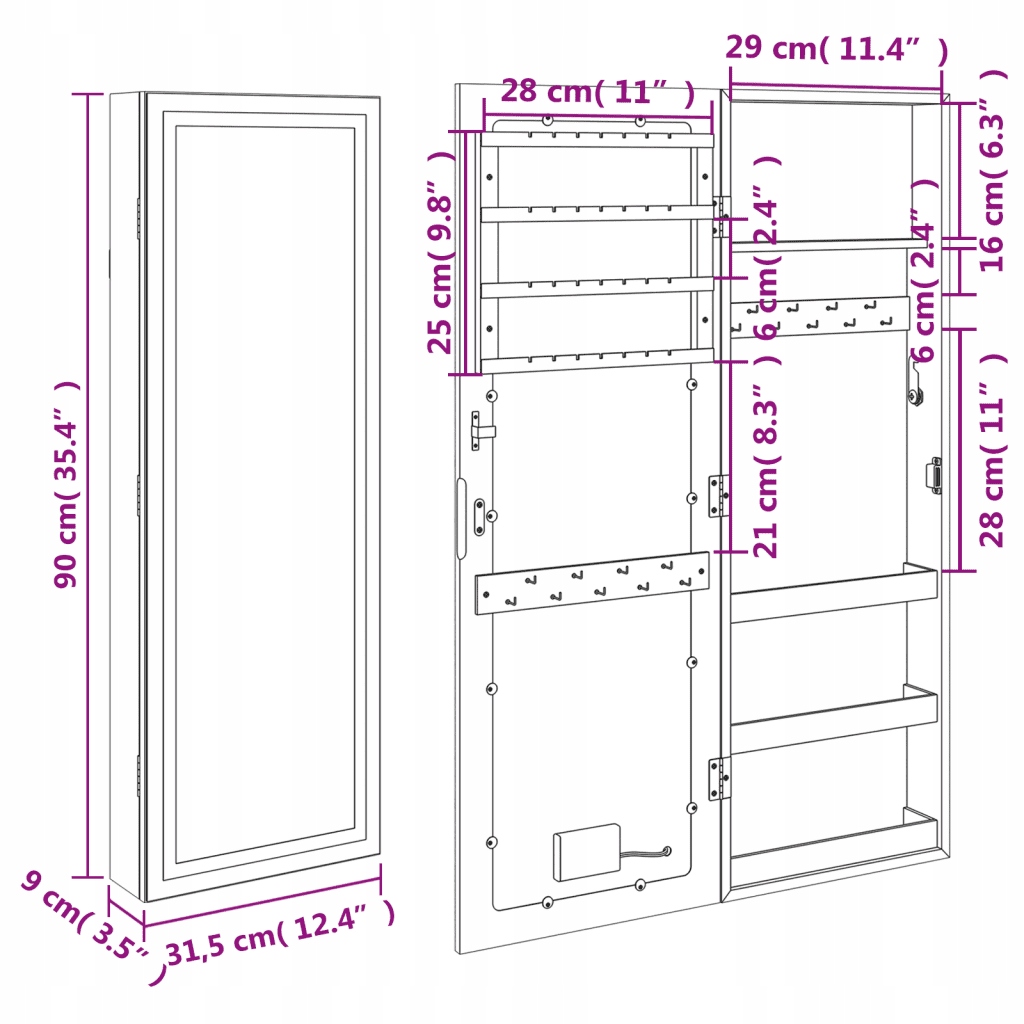 Зберігайте свої ювелірні вироби та парфуми в стриманому та елегантному вигляді за допомогою цієї стильної шафи для ювелірних виробів із дзеркалом зі світлодіодним підсвічуванням!