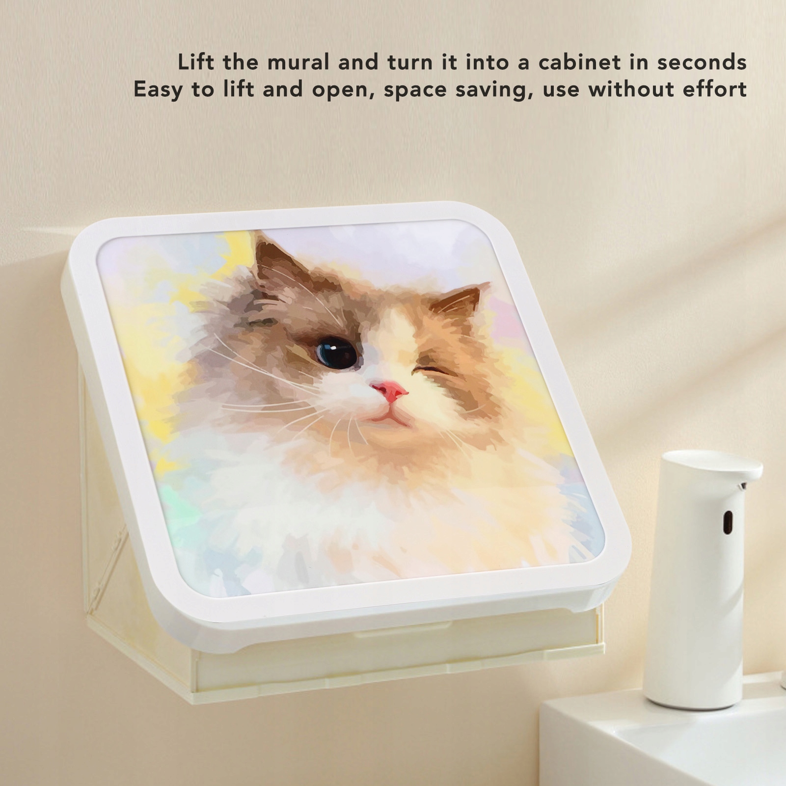 2. Простота встановлення: навісну шафу для ванної кімнати легко встановити, просто закріпіть її на стіні, не потрібно шукати отвори, водонепроникна, складна конструкція для зручного зберігання.