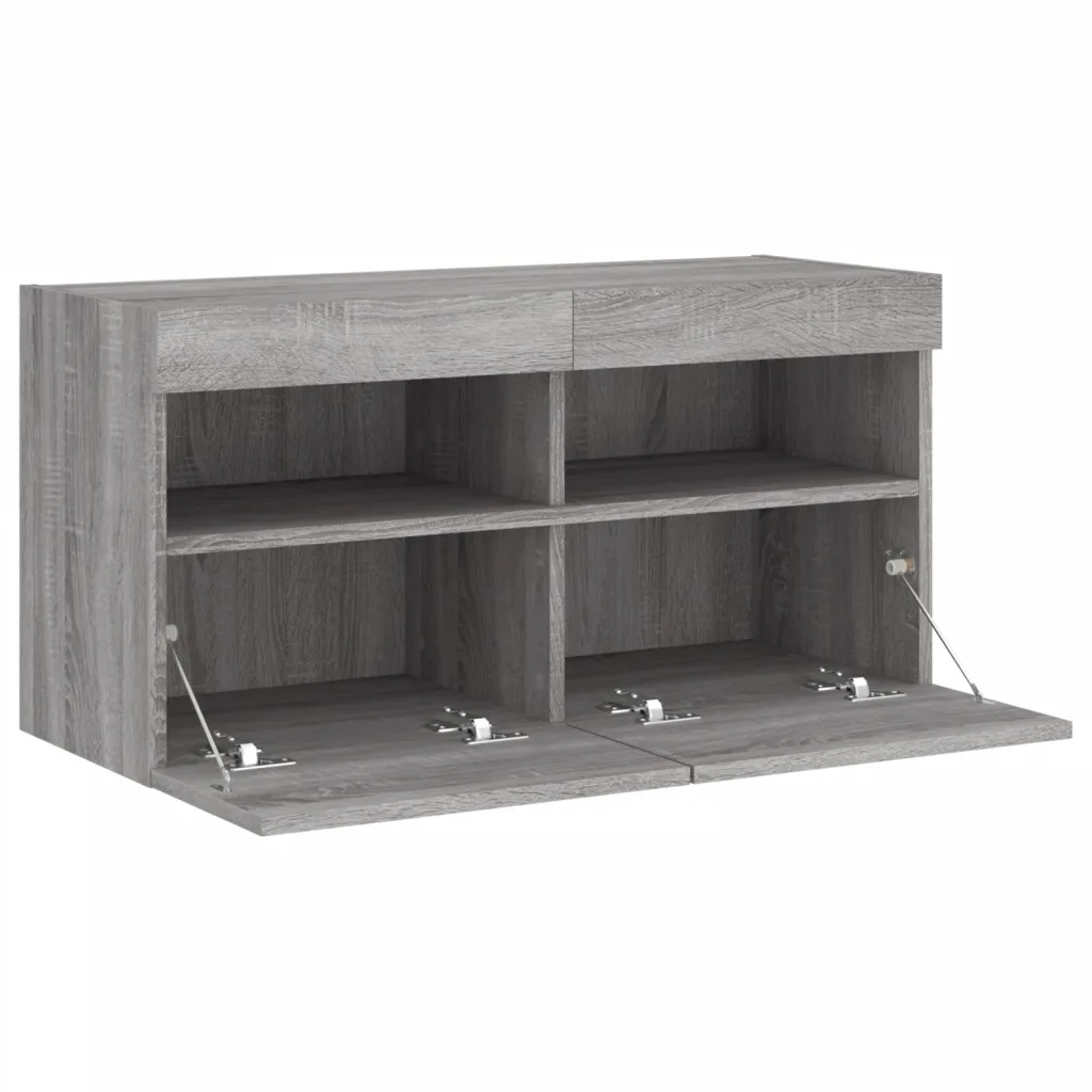 Навісна тумба під ТВ, зі світлодіодом, сірий дуб сонома, 80x30x40 см